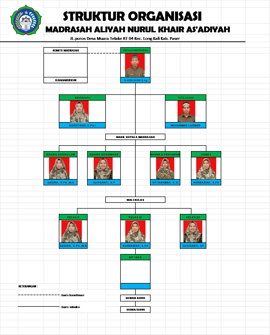 Perjalanan dan keberadaan MA Nurul Khair As’adiyah Long Kali dalam melaksanakan pengabdiannya telah mengalami pergantian kepemimpinan, yang secara berurutan:
